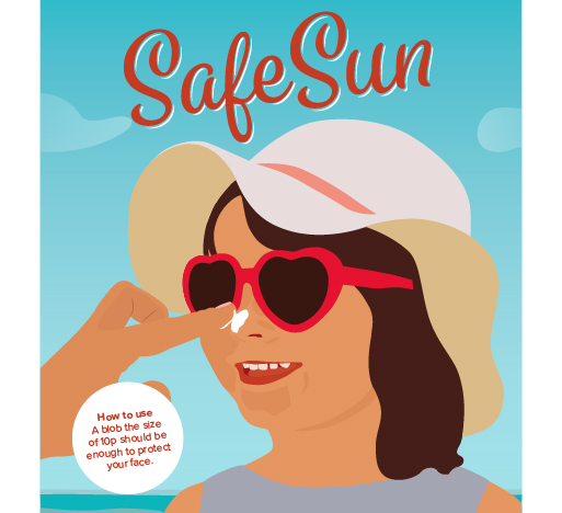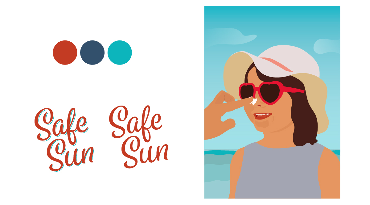 I chose to create a vintage-inspired illustration, drawing on the familiar charm of classic railway location posters. The final design featured a young girl having sun cream applied to her nose, paired with a playful vintage font and an illustrative banner for a cohesive, eye-catching look.